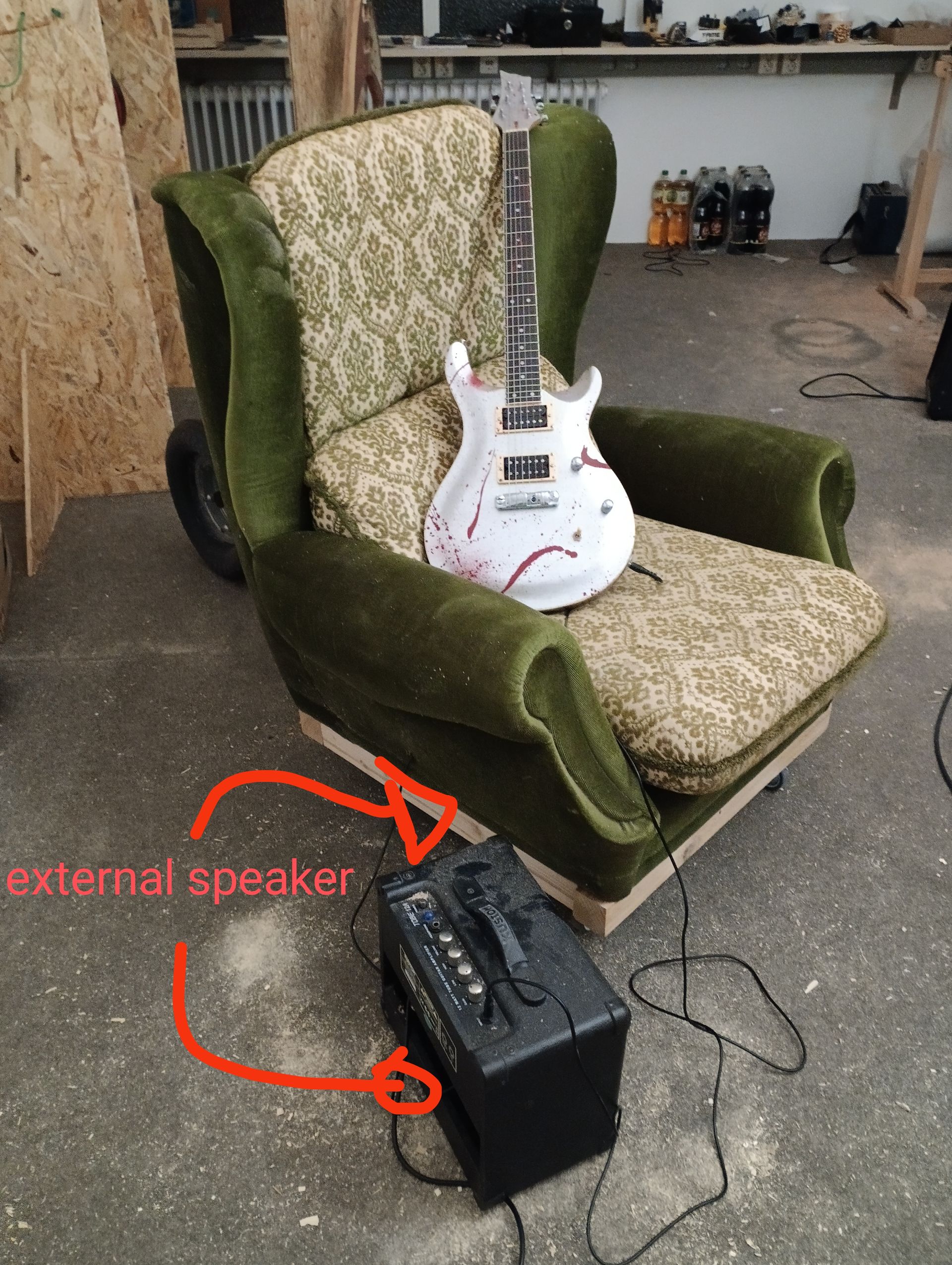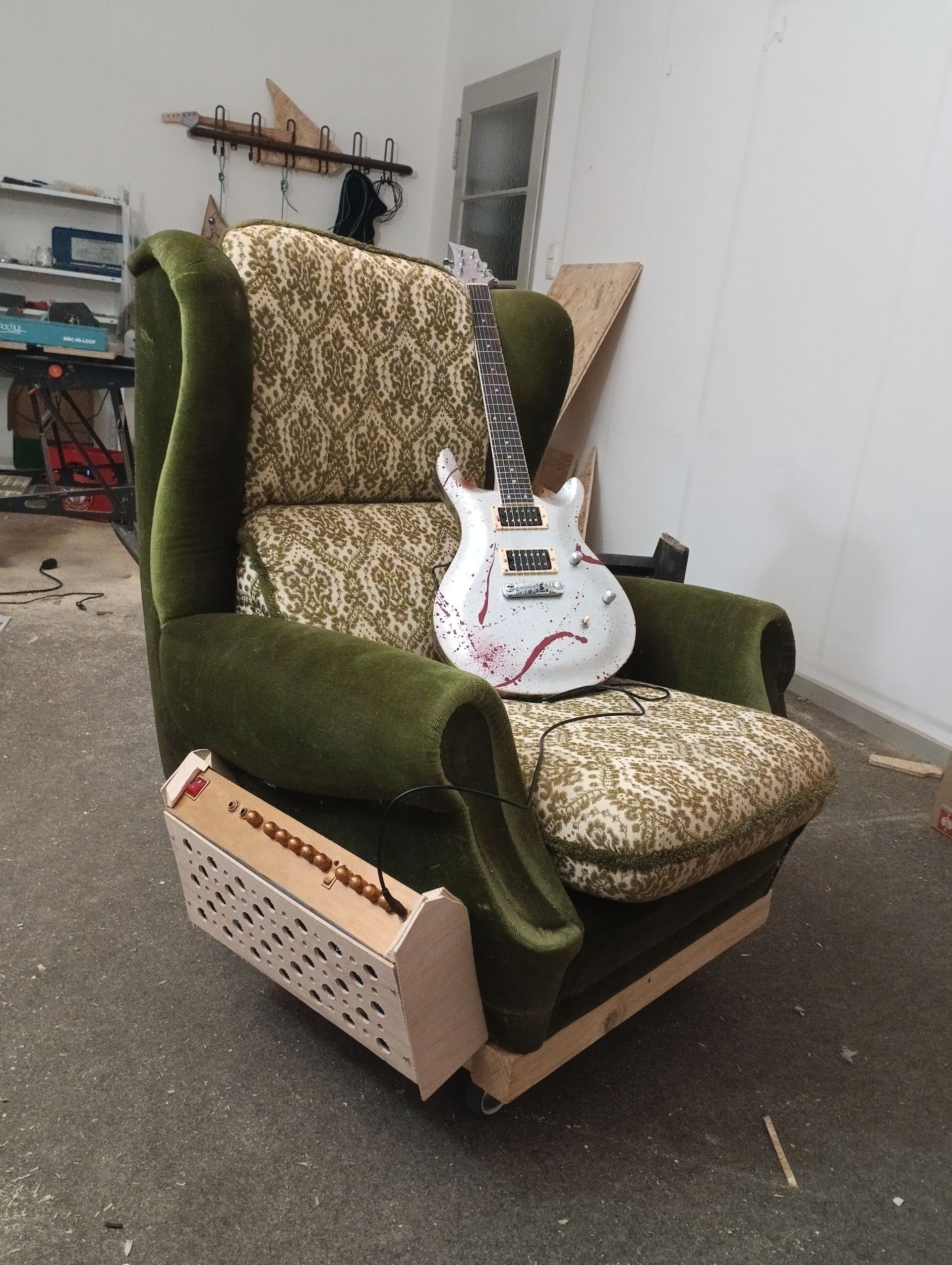 Der Ohrensessel ist an und für sich das bequemste Möbelstück, das ist aber für laute Gitarrenmusik vielleicht gar nicht so gut.