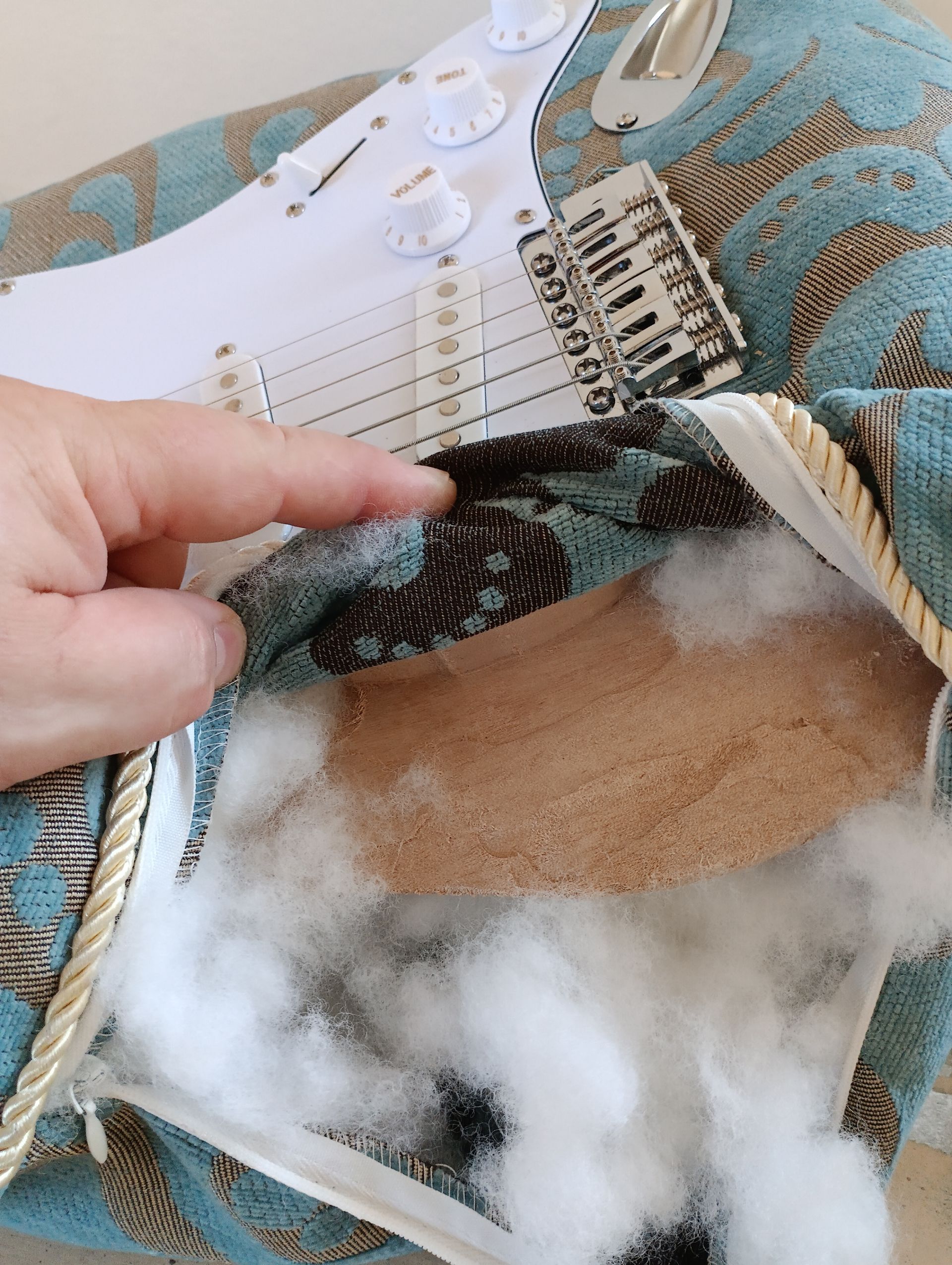 Ich sitze abends gerne auf dem Sofa und spiele E-Gitarre (leise). Leider ist das unbequem, selbst mit Belly-Cut, weil Gitarren nun mal nicht für eine entspannte, leicht zurückgelehnte Spielposition gedacht sind. Die Softie löst das Problem sehr elegant, in dem der Holzkorpus durch ein angenehm weiches Kissen ersetzt wird.